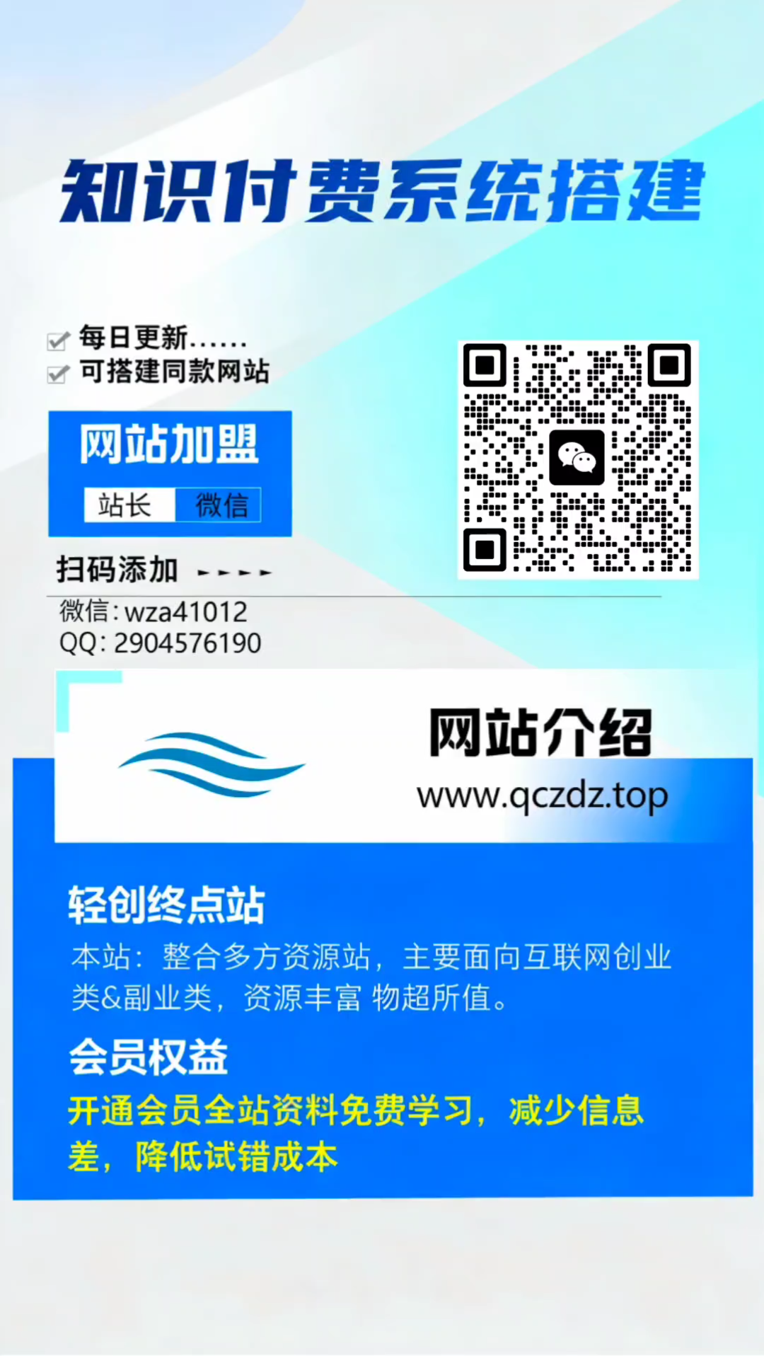 加盟轻创终点站,加盟搭建同款知识付费资源网站,实现长期稳定被动收入~